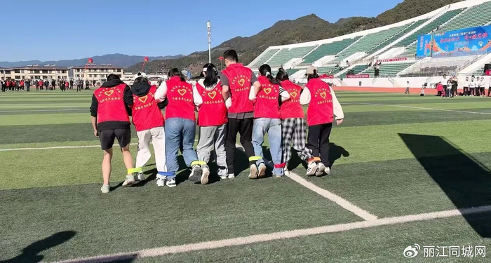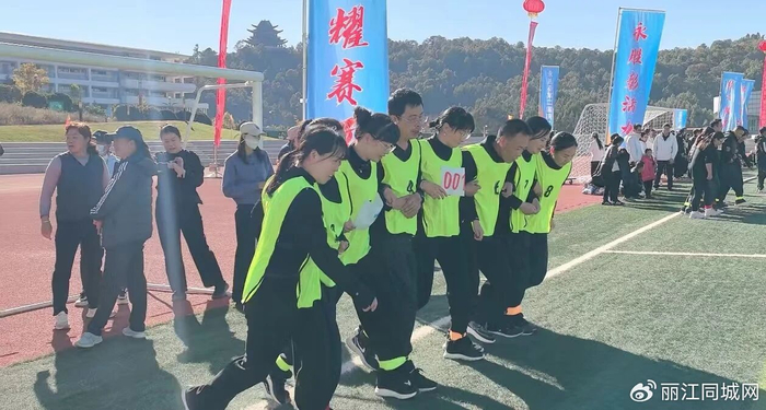 12月6日,永胜县第二届职工运动会“8人9足”趣味赛热闹开赛。来自全县各机关、乡镇、企事业单位的18支队伍齐聚赛场,用绑带连接起默契与信任,以整齐划一的口号与步伐,在绿茵场上演了一场既紧张激烈又妙趣横生的精彩角逐。下午15时许,随着裁判员一声哨响,比赛正式拉开帷幕。宽阔的跑道上,各队8名队员肩并肩站成一排,相邻队员的脚踝被红色绑带牢牢系在一起,形成“8人9足...